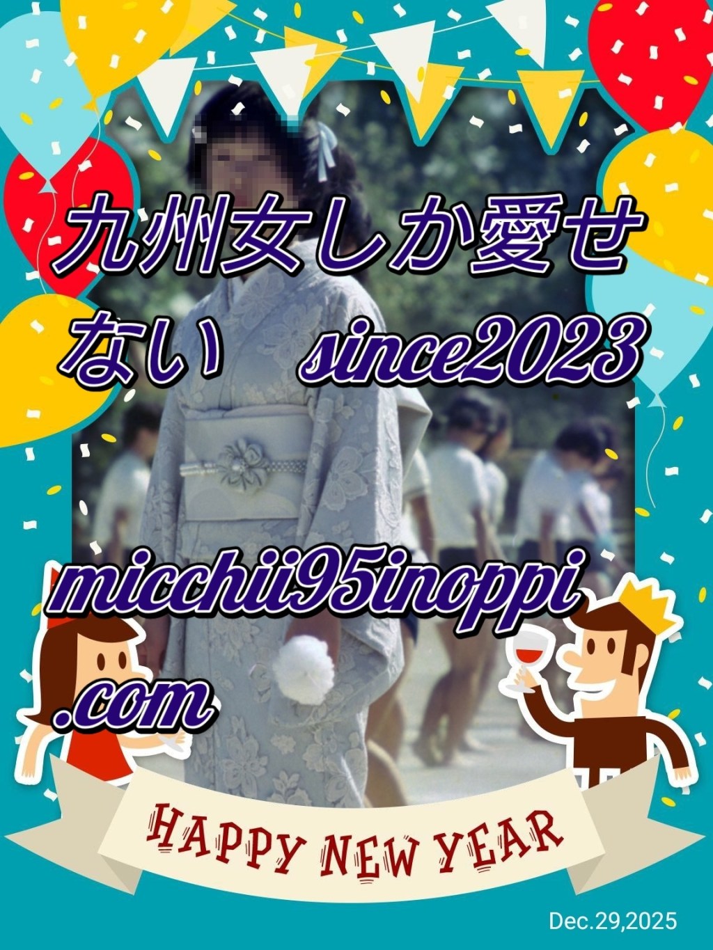 お正月は着物姿でって思いまして私の九州娘オリジナル未発表写真にAIで衣装替えさせて顔にモザイクして完成した年賀状もどき^^;ですけどなかなか可愛くて良いでしょ(=^・^=)