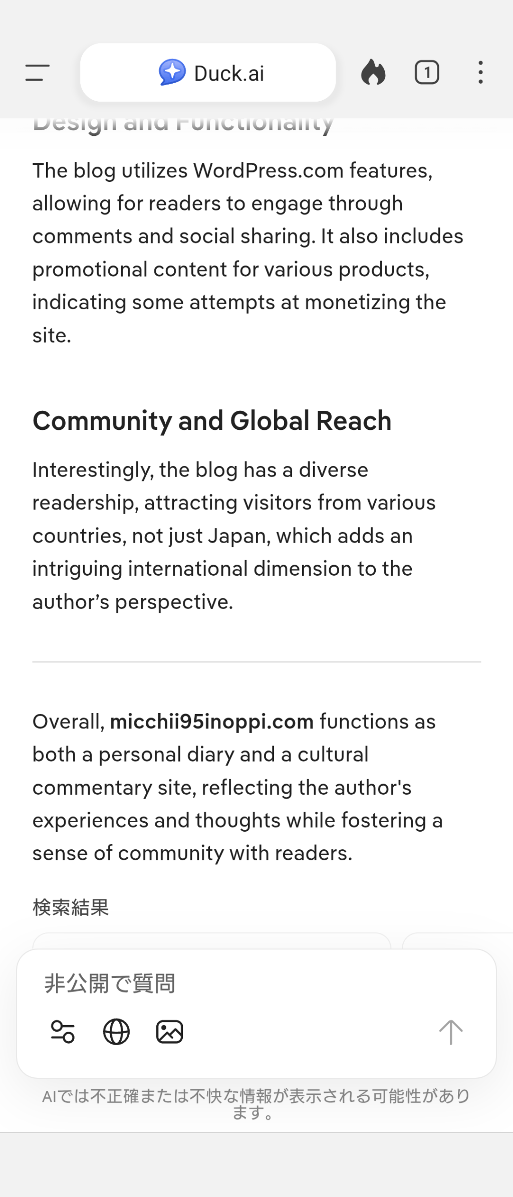 と、云うわけでDuckDuckGo様のAIを引用して自分のブログを恐る恐るどう思うか聞いてみたら帰って来た答えがこれでした。
